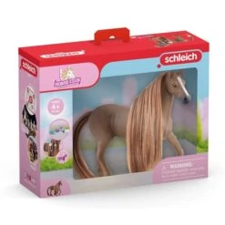 The Schleich Horse Club Sofia’s Beauties English Thoroughbred Mare loves washing, brushing, braiding and accessorizing. This fashion-conscious horse likes swapping her beads and hair clips every day. Should she wear purple today, or maybe turquoise or white?